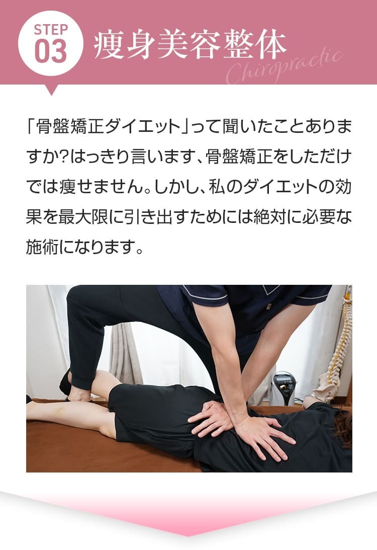私はダイエットにも特化した整体を運営しており、地域の皆様を始めとする多くの方の施術に携わっています。そんな私がなぜダイエットの施術を始めたのかには理由があります。私は重度の腰痛や膝痛に特化した施術(骨盤調整や運動療法)を行っております。