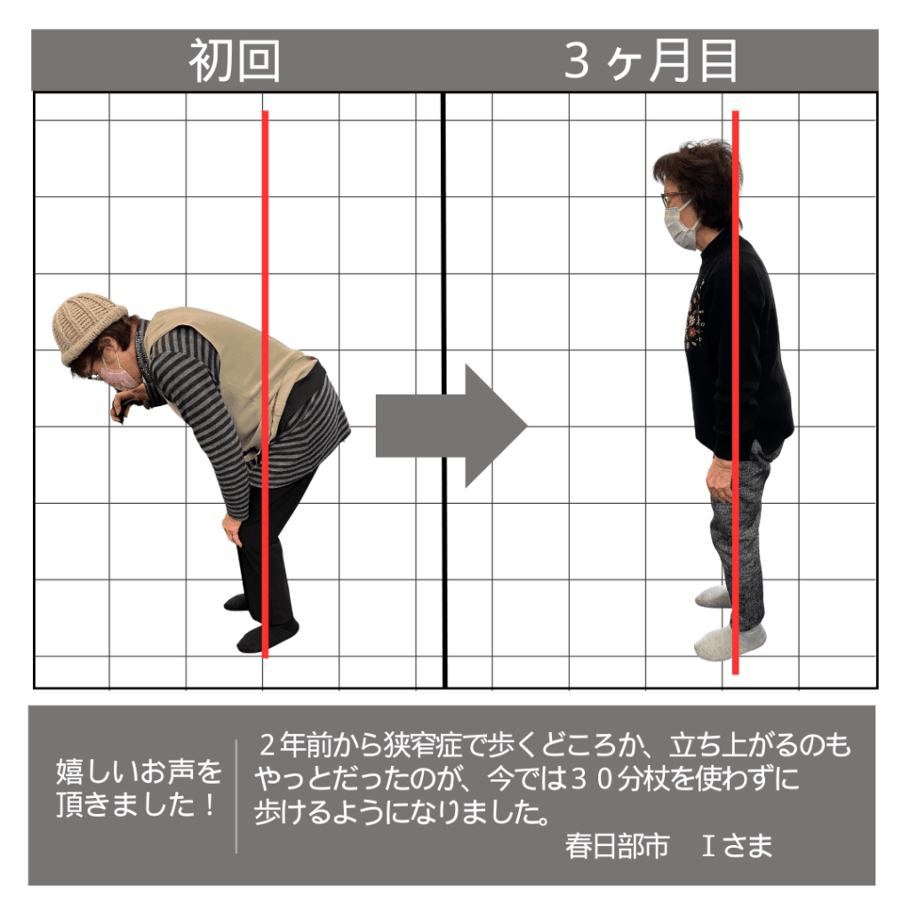 今では狭窄症と言われる前と同じくらい歩けるようになりました。